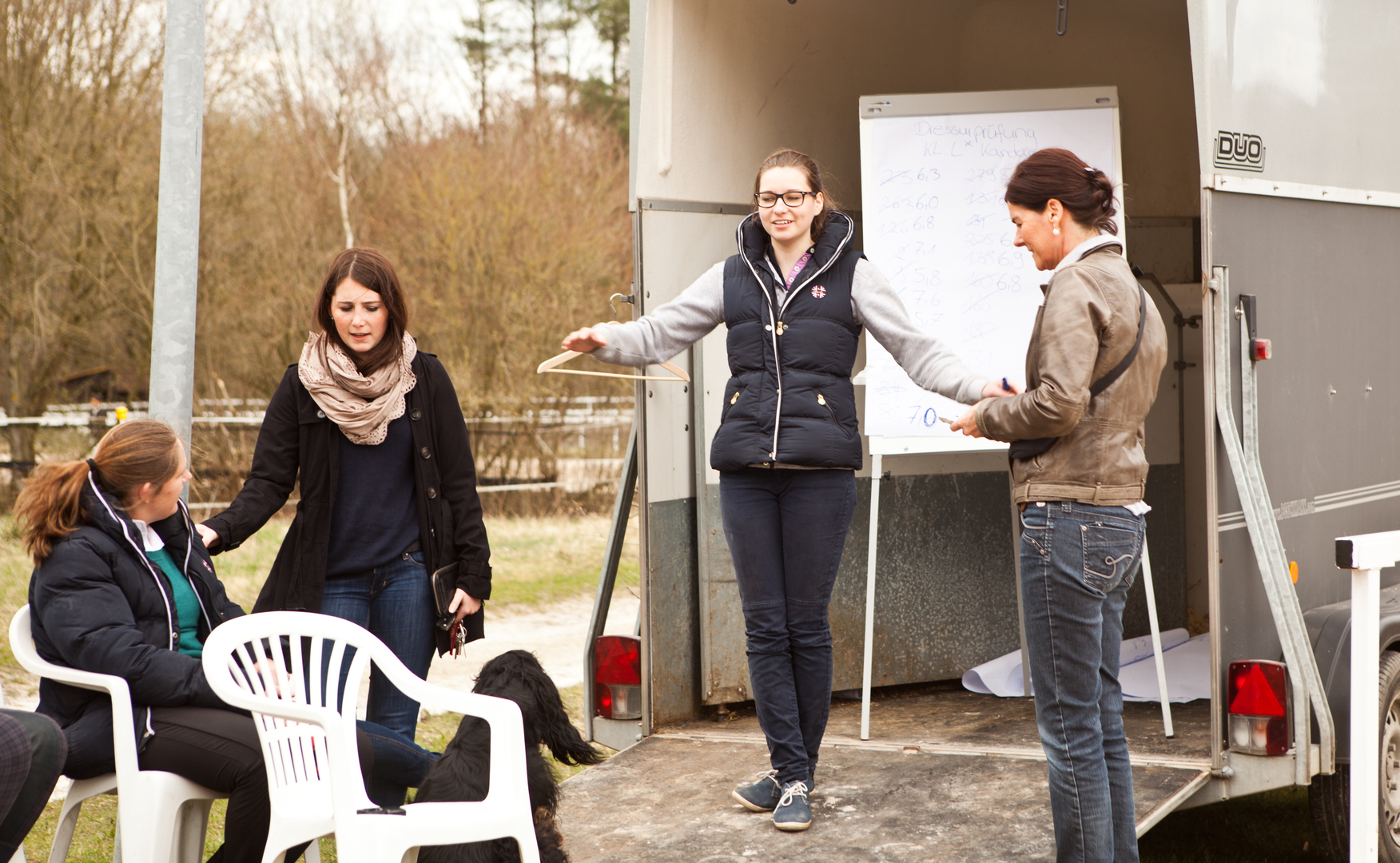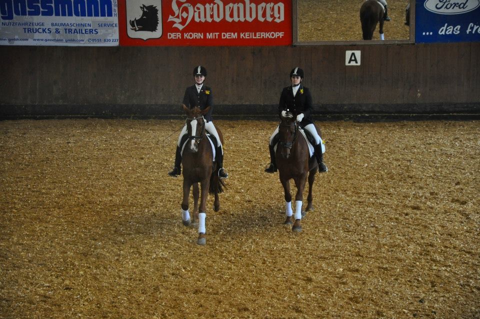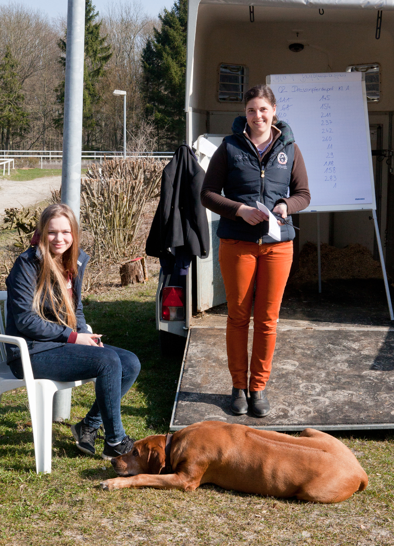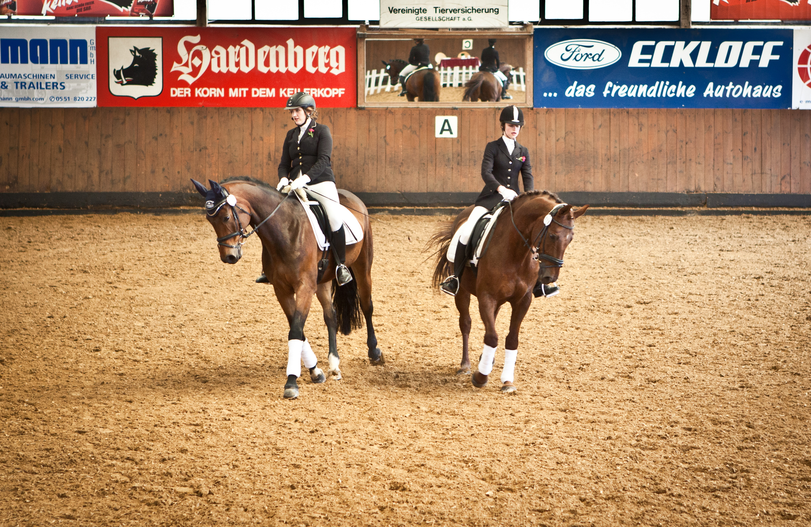 Ein weiteres Highlight des Turniers war die Ausrichtung der ersten Qualifikationsprüfung zum „Freundschafts-Cup“ der Malerwerkstatt Ringeisen. 41 Teilnehmer waren es in der L-Trense, wovon 26 Reiter jeweils ein 2er-Team bildeten. Am Ende der Prüfung wurden die Ergebnisse beider Reiter eines Teams gesondert bewertet. Gewonnen haben Josephin Nestler und Antonia Koperski (beide vom RV Hof Bettenrode). Jana Spangenberg (RV Hainholzhof) und Merle Mercedes Brandes (Hof Bettenrode) belegten Platz 2 vor Jaqueline Feesche (RV Hainholzhof) und Nicole Bode (RV St. Georg Nesselröden). „Wir sind sehr stolz, dass alle Prüfungen so gut besucht waren. Allein die L-Dressur hat am Freitag 4,5 Stunden gedauert. Es zeigt, dass die Reiter sehr gerne zu uns kommen“, freut sich Maren Harloff, Turnierleitung und 2. Vorsitzende des gastgebenden Vereins. Entspannen können die Mitglieder jedoch nicht. In drei Wochen organisiert der RV Hainholzhof ein Springturnier bis zur Klasse L auf dem Außengelände.